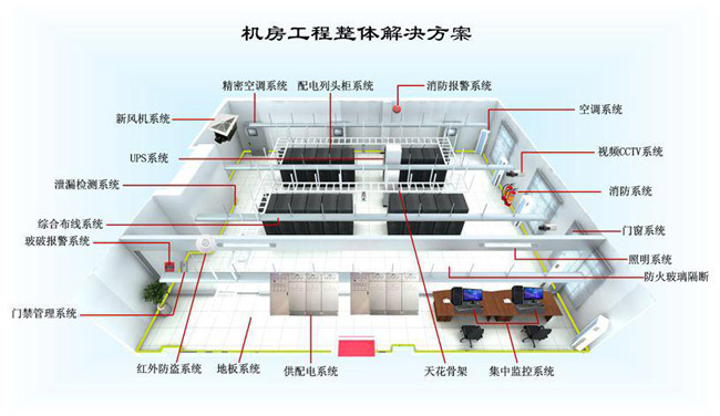 機房是各類信息的中樞,機房工程必須保證網(wǎng)絡和計算機等高級設備能長期而可靠地運行的工作環(huán)境,不僅集建筑、電氣、機電安裝、裝修裝飾、網(wǎng)絡構建等多個專業(yè)技術于一體,需要豐富的工程實施和管理經(jīng)驗,其機房設計與施工的優(yōu)劣直接關系到機房內(nèi)整個信息系統(tǒng)是否能穩(wěn)定可靠地運行,是否能保證各類信息通訊暢通無阻。機房的環(huán)境必須滿足計算機等各種微機電子設備和工作人員對溫度、濕度、潔凈度、電磁場強度、噪音干擾、安全保安、防漏、電源質量、振動、防雷和接地等的要求。中心機房建設包括以下幾個方面: